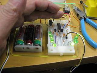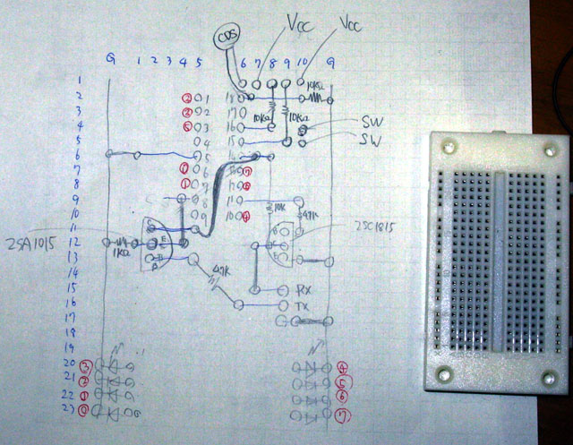 再来週には隣の郡で技家の先生たちが集まるときに、デモを見せると言うことなので、ブレッドボードで作ればいいかと試してみた。