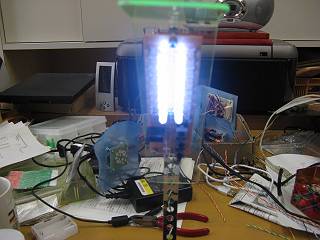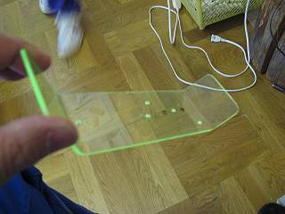 LEDと抵抗、スイッチが一つの基盤になっているので、アクリルでシェードをつけてライト部にした。