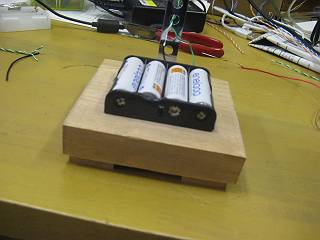 台座は電池ボックスのみ。一年生で使ったヒノキ材のあまりを使用。