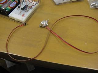 ブレッドボードはこんな感じ。232Cのコネクタはヘッダーピンで差し込む形式。間違わないようにブレッドボードにマジックで色をつけた。