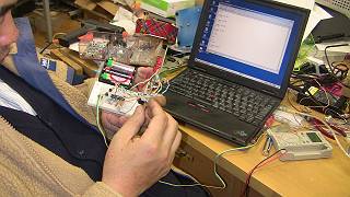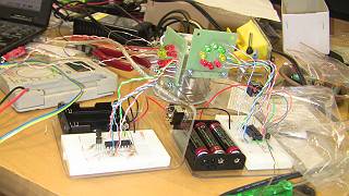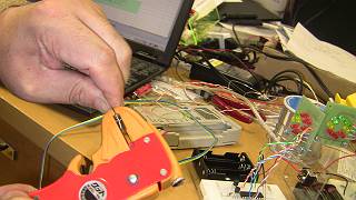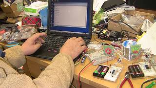 午後になったら、業者のイマザワさんが来てくれたので、一緒に学校でデモ機を製作した。