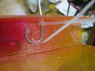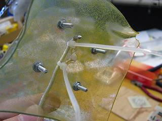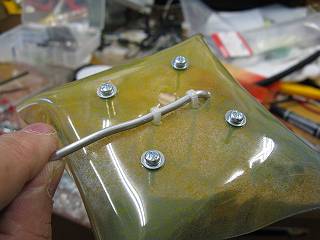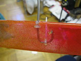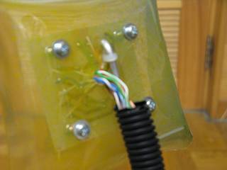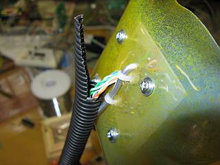 そこへ、車の電気配線に使う蛇腹チューブをかぶせた。上の部分の処理は悩んだけれど、右側の形で仕上げた。