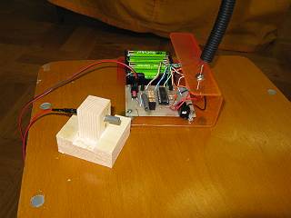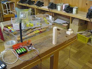 遮光センサーとしてのCDSを照らすための光として、ここへ白色LEDをつないで試してみた。