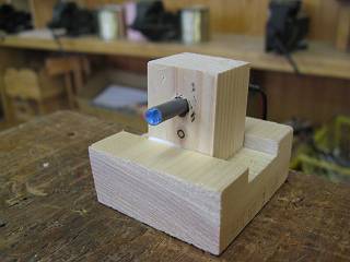 弓のこで切り込みを入れ、両側へ曲げてスタンドにする。