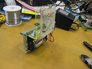 別の加工。先日イマザワさんが作ったココナッツサンプル。基盤だけだったのでアクリル板で筐体を作ってみた。