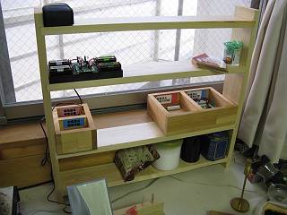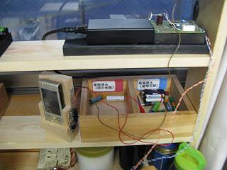 そして鉛蓄電池の充電キット。先日理科の先生に作ったものと同じだが、今回は板に取り付けて棚の上に置いた。