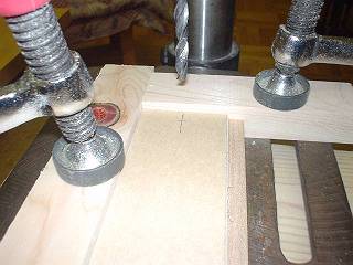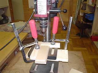 その後、引っかけるための穴を開ける。枚数があるのでガイドを固定してボール盤であけた。