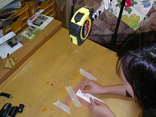 名札係の先生にやってもらったが、なかなかうまくいかずに変に割ってしまうので、結局自分が切断した。