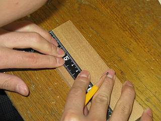 一つ長さを合わせて決めた後、毛引きで量産。 穴は2段切りによって開けた。