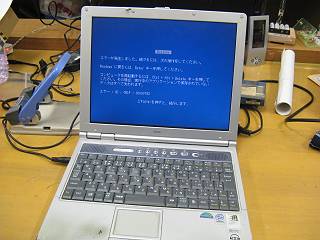 その後、USB接続のCDドライブから、DELLのXPpro用再セットアップCDを使ってセットアップ。