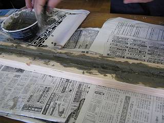 それで、考えたのがパイプに新聞紙を巻くことにするか、発泡スチロールなどを埋めて後で溶かすかという案。