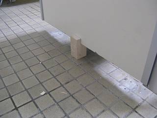 学校の女子トイレ、パーテーションを支える足が曲がってしまい扉が閉まらなくなってしまった。