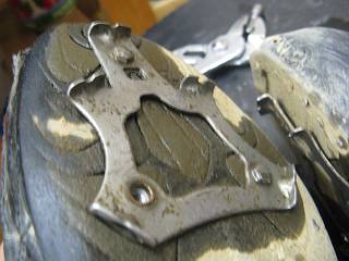 というわけで、1時間と少しで交換することができた。実際にはかかと側を留める3本のナットのうち、一番かかと側の1本がネジ部を取り出せなかったので、固定できなかった。それでも両側の2本でしっかり固定することができ、手打ちとなった。
