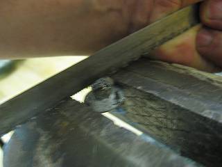 2.5mm、3.2mm、4.2mmと段階的にあけていき、少し出っ張ったところを弓のこで刻んでからマイナスドライバーでこじってみたら・・