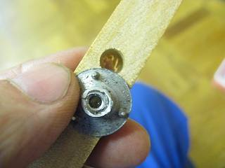 もう一つも、同じ方法でやったが、こちらの方がなかなか抜けず、下敷きの木に逃げる分の穴を開けてからきちんと安定させた上で、ボルトの内側ぎりぎりのドリルを使って穴を開けたら、うまく外すことができた。(少しネジの山を削ってしまったものの、はめてみたらしっかり固定できた)