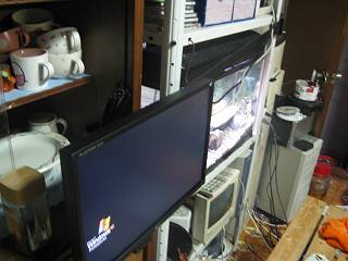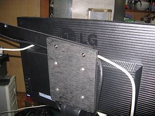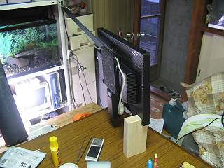 家の食卓で仕事ができるようにアームを作った液晶ディスプレイ。