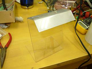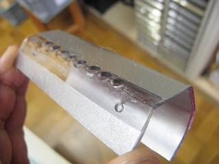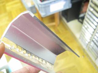 アクリル板を曲げてから両側に銀色のスプレーでコーティング。