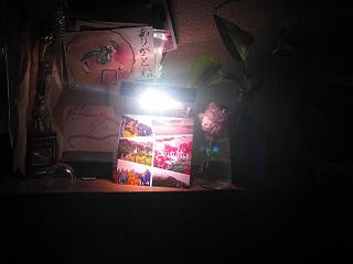暗いところへ置いてみると、かなりいい感じで写真を浮かび上がらせることができる。