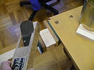 木目はどっちなんだい?と考えたが、結局木口面に溝を引いた。見た目はともかく、この方が強いもの。