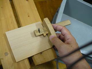 続いて下にひく板を切って、けびきで取り付け位置をけがく。