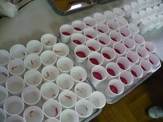 層状にしたゼリーを全員分作っている理科の先生。
