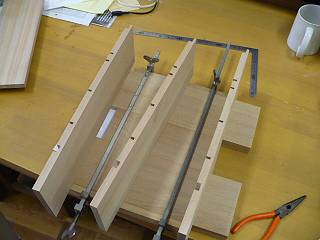 側板も同じ材料で3本の柱として、棚板が入るように溝を入れた。