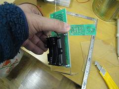 とりあえず以前にも作ったがペット材を真ん中にはさんで両側に電池ボックスと基板を取り付けるもので製作を開始。