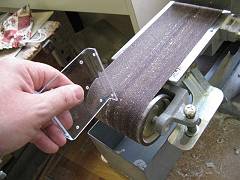 筐体のレールに入れるためにベルトサンダーで頭の部分を削る。