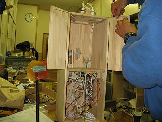 基板は板に固定したあと、整備製を考えてマジックテープで内部につるすことにした。