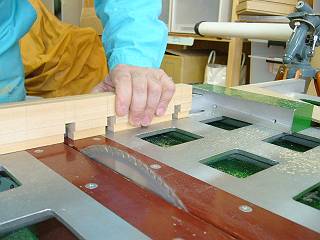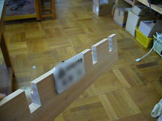 各学級にあるのは40人枠で作ってある。それらは合板を細かく切って貼り合わせた作りになっているが,今回は一枚板に溝を切り込んで一体成形で作ることにした。