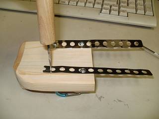 腰につけるベルトクリップは穴あきステーで作成。