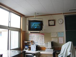 夏休み前最後の土曜日,クラブの生徒たちにテレビをラックに載せてもらった。