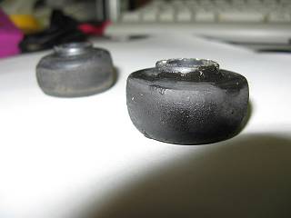 これがふるいブッシュ(右側の残っていたほう)まあ,交換すべきなんでしょうね。