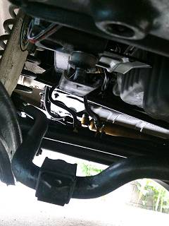 両側のリンクを外してスタビがぶら下がっているところ。