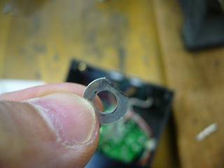 コントローラ側は取り付け部分が割れてとれていたので、ワッシャを2枚で安定させようとするが、大きすぎてコネクタ取り付け部に干渉してしまう。