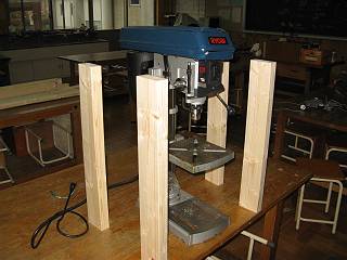 狭い技術室なので、今まで以前のボール盤があったところに今回のものを置いて、使うときは以前のもの(キャスターがついている)を横に動かして展開した状態で使おうと思う。