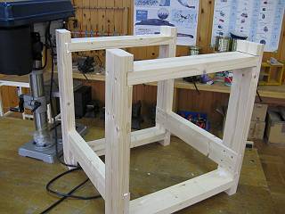 上の部分は前後に材を渡して構造体とし、固定用の穴の下にもう一本入れてボルトで留めた。
