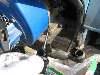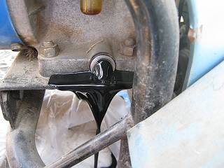 オイル排出中。初めて市販の廃油処理箱を買ってみた。排出口の上にある水抜きタンクが空なのはここもクリーニングしたため。
