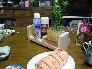 右側、本日学校へお越しいただいた信州大M先生よりいただいたお土産の桜ロール、家族でおいしくいただきました。