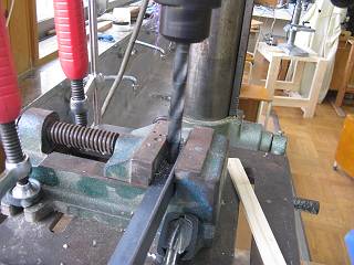 ねじの径を測ると12mmということで、卓上ボール盤で穴を開ける。