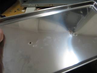 100円ショップで買ったステンレストレイに穴を開けて、固定することにする。