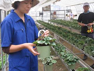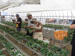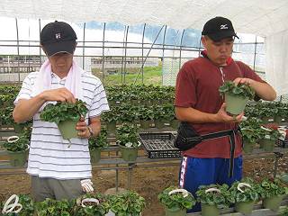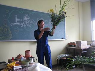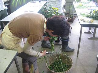 最初はお盆に販売するために作っている切り花を切って,花束を作る講習。