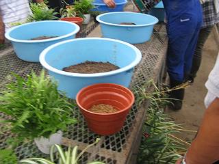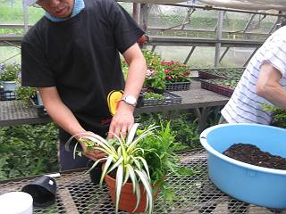 教室に飾れるものと言うことで,好日性ではない観葉植物を3つ植木鉢に移す。