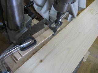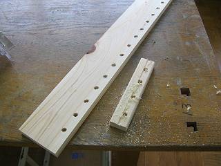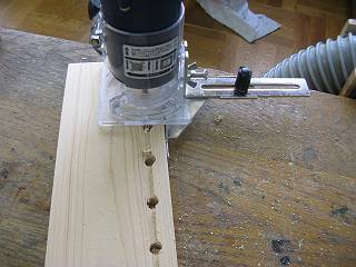 穴あけ後、トリマーで溝をひいてコネクタが収まるようにする。あまり木で確認用にサンプルを作る。