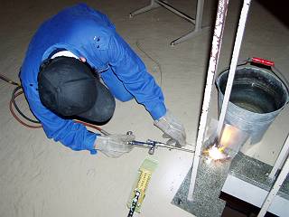久しぶりにガス溶接で作業することにした。切断ノズルを溶接ノズルに取り替える。