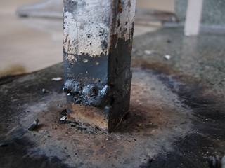 角パイプの元が切れている。かなりの力が加わったのだろうけれど、何があったのやら。