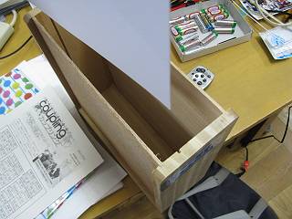 自分のクラスに,長期欠席の生徒がいるのだけれど,その子に渡すプリントやら資料を入れる箱を作った。