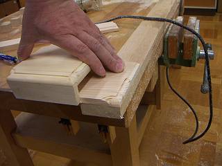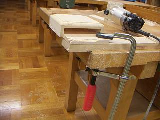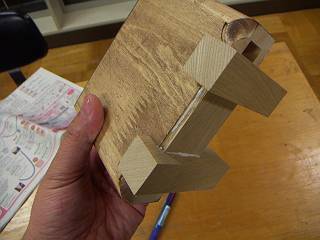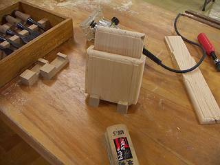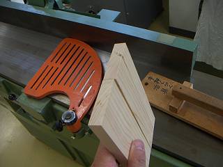 足も斜めにカットする。刃の切れ味もすばらしい。ここらは生徒用の材を何百回も切っていないから劣化も少ないところ。