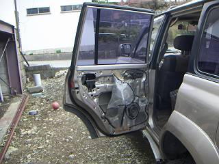 しっかり直すのも一つだけれど、とりあえず内側から押せば回復するかと考え、内張を取り外す。