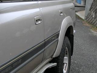 止まった状態で、見えない柵に気づかず動かしたので、しっかりへこんでしまった。